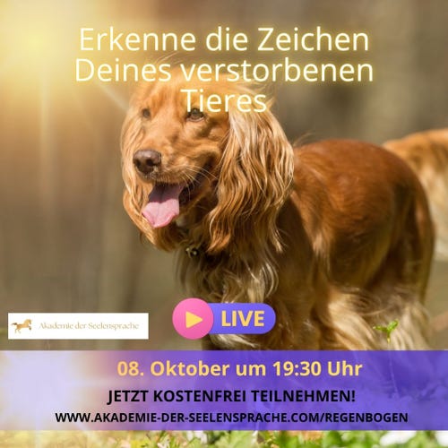 Dieses exklusive LIVE-Webinar ist nicht irgendein Webinar oder ein Zoom Meeting. Dieses Webinar hat das Potenzial, die Verbindung Deines Tieres und Dir komplett zu verändern, wenn Du das möchtest. Du wirst alte blockierende Glaubenssätze, dass eine konkrete Kommunikation mit Deinem verstorbenen Tieren nicht möglich ist entlarven, und Dein wahres Potenzial mit Deinem Tier sprechen zu können entfalten und nachhaltige Veränderung im Leben Deines Tieres und Dir erreichen können.